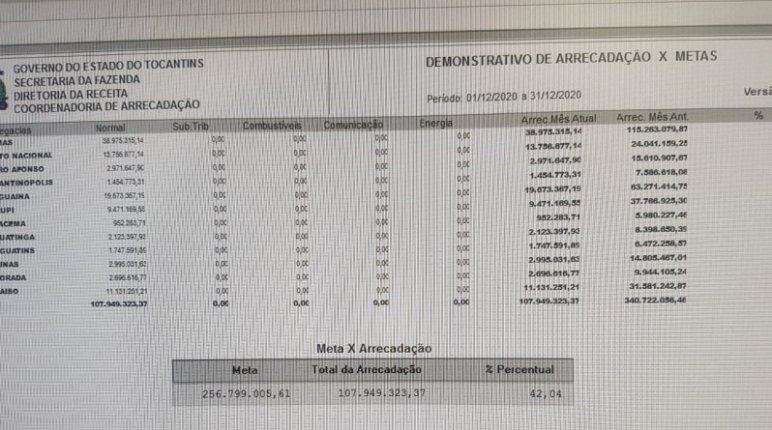 De outro modo: o Fisco estadual só conseguiu cumprir 42,04% da meta pré-estabelecida pela Secretaria da Fazenda. O valor é R$ 233 milhões inferior aos R$ 340 milhões arrecadados em novembro e R$ 171 milhões a menos que os R$ 277 milhões de dezembro de 2019.