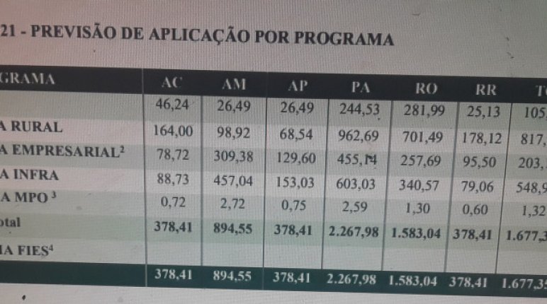 Nos valores destinados aos Estados da região Norte, o Tocantins é o segundo maior contemplado (R$ 1,677 bilhões). O que receberá maior alocação de recursos é o Pará (sede do banco) com R$ 2,267 bilhões.