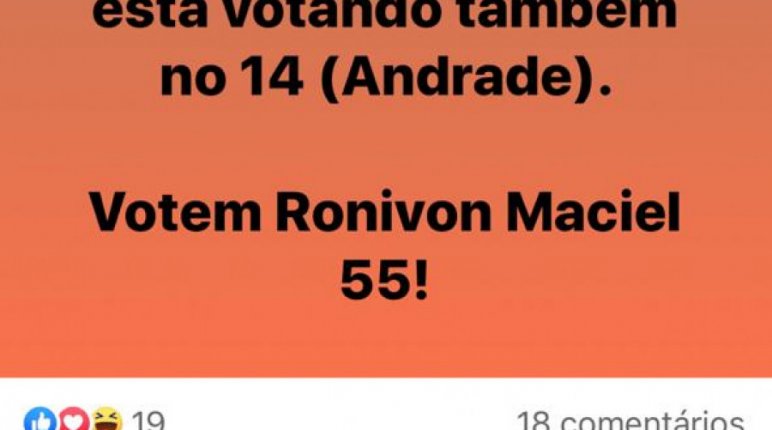 Os marqueteiros de Ronivon espalham nas redes sociais que o voto em Joaquim Maia (do qual Ronivon foi vice-prefeito até dias atrás com salários de R$ 12mil) vai cair em Otoniel. “ Quem vota em Maia está votando também em Andrade”, pontua a campanha de Ronivon.