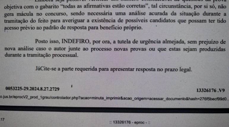 “Sendo necessária uma análise acurada da situação durante a tramitação do feito para averiguar a existência de possíveis candidatos que possam ter tido acesso prévio ao padrão de resposta para benefício próprio.”