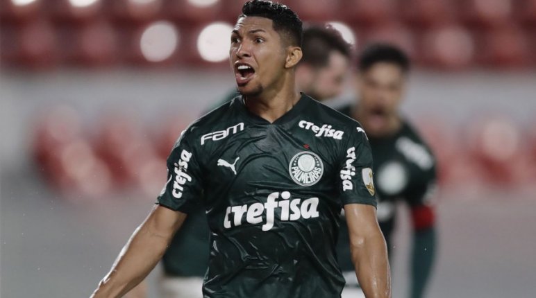 Mas aos 26 minutos o Palmeiras finalmente conseguiu criar algo. E quando o fez, abriu o placar. Gabriel Menino recebe na direita e cruza rasteiro para o meio da área. O goleiro Armani corta errado e a bola sobra na entrada da área para Rony, que bate cruzado para marcar.