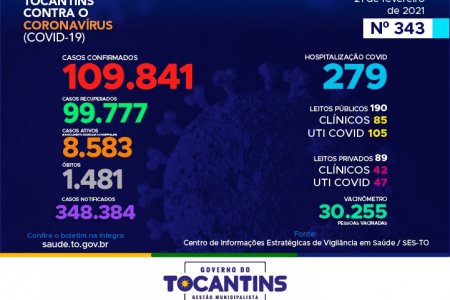 Hoje o Tocantins contabilizou 325 novos casos confirmados da Covid-19, sendo 108 das últimas 24h. O restante é de exames coletados em dias anteriores e que tiveram se...